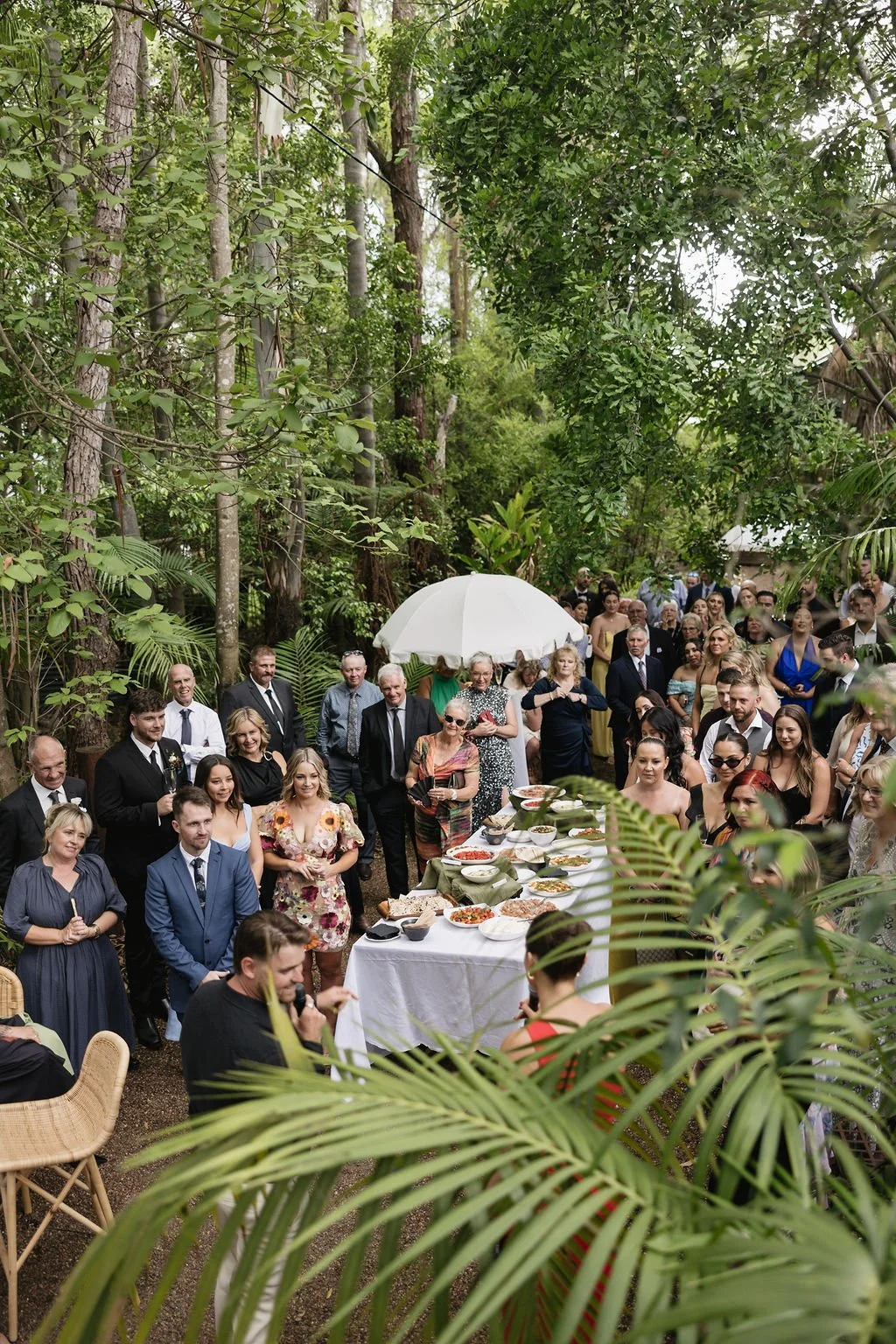 As the sun begins to dip, cocktail hour follows along our iconic rainforest walk. With drinks in hand and music floating through the trees, the atmosphere is both a celebration and a retreat. It’s a moment for your guests to breathe in the beauty of the Hunter Valley while you disappear for sunset photos by the lake.